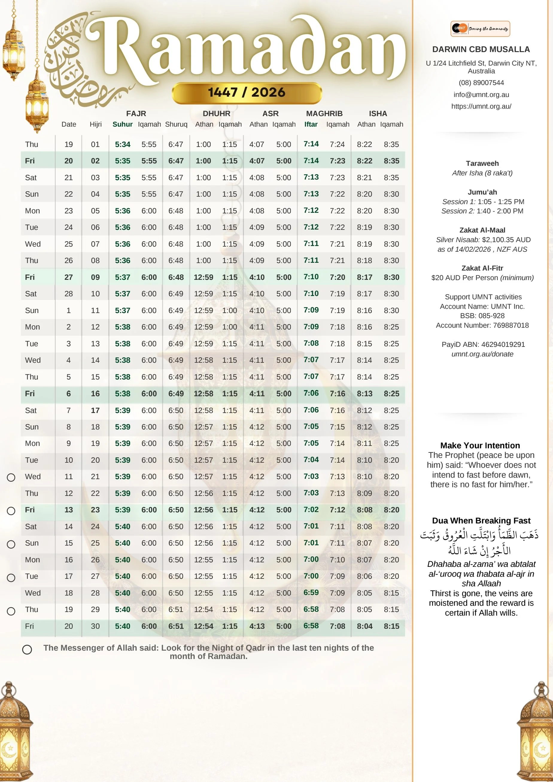 Prayer Times for Darwin CBD